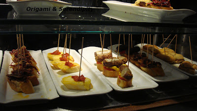 Alors, c´est précisément là-bas qu´on a dégusté les premier "pintxos" de notre séjour barcelonais. D´après mes images on peut bien apprécier que c´était difficile le choix entre saumon, jambon, morue ou “piquillos”.